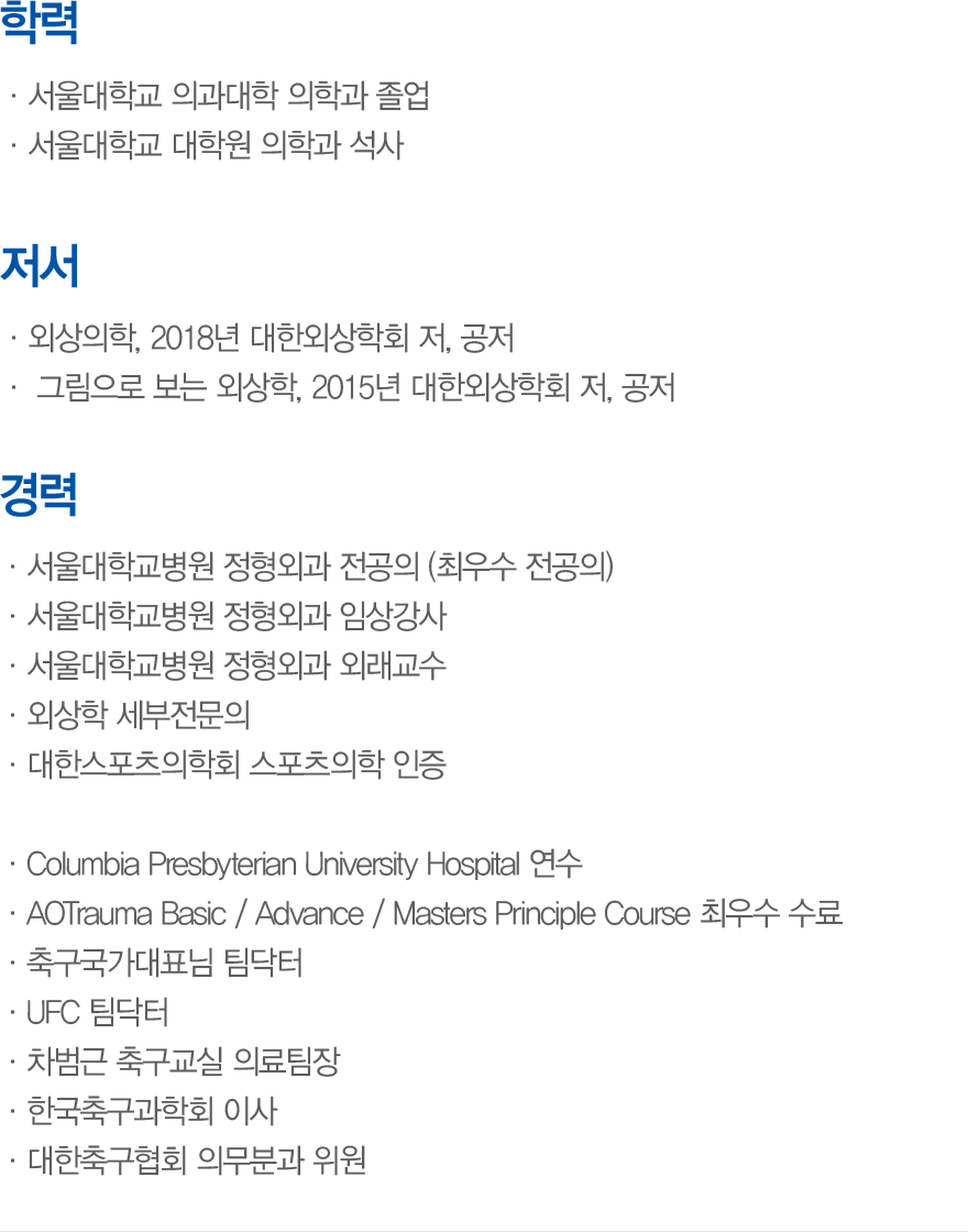 정형외과 전문의 관절, 스포츠손상 센터장 백정국