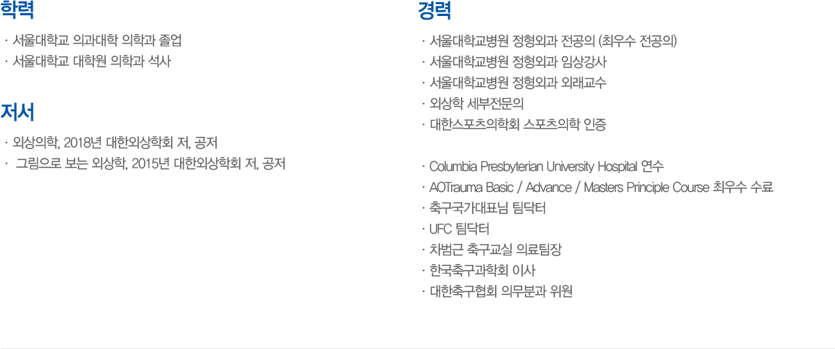 정형외과 전문의 관절, 스포츠손상 센터장 백정국