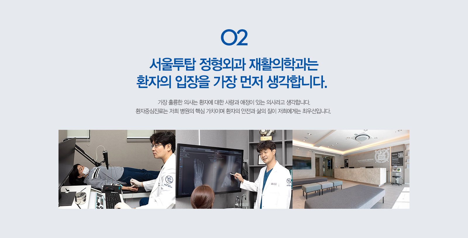¼­¿ïÅõž Á¤Çü¿Ü°ú ÀçȰÀÇÇаú´Â ȯÀÚÀÇ ÀÔÀåÀ» °¡Àå ¸ÕÀú »ý°¢ÇÕ´Ï´Ù. °¡Àå ÈǸ¢ÇÑ ÀÇ»ç´Â ȯÀÚ¿¡ ´ëÇÑ »ç¶û°ú ¾ÖÁ¤ÀÌ ÀÖ´Â ÀÇ»ç¶ó°í »ý°¢ÇÕ´Ï´Ù. ȯÀÚÁß½ÉÁø·á´Â ÀúÈñ º´¿øÀÇ ÇÙ½É °¡Ä¡À̸ç ȯÀÚÀÇ ¾ÈÀü°ú »îÀÇ ÁúÀÌ ÀúÈñ¿¡°Ô´Â ÃÖ¿ì¼±ÀÔ´Ï´Ù.